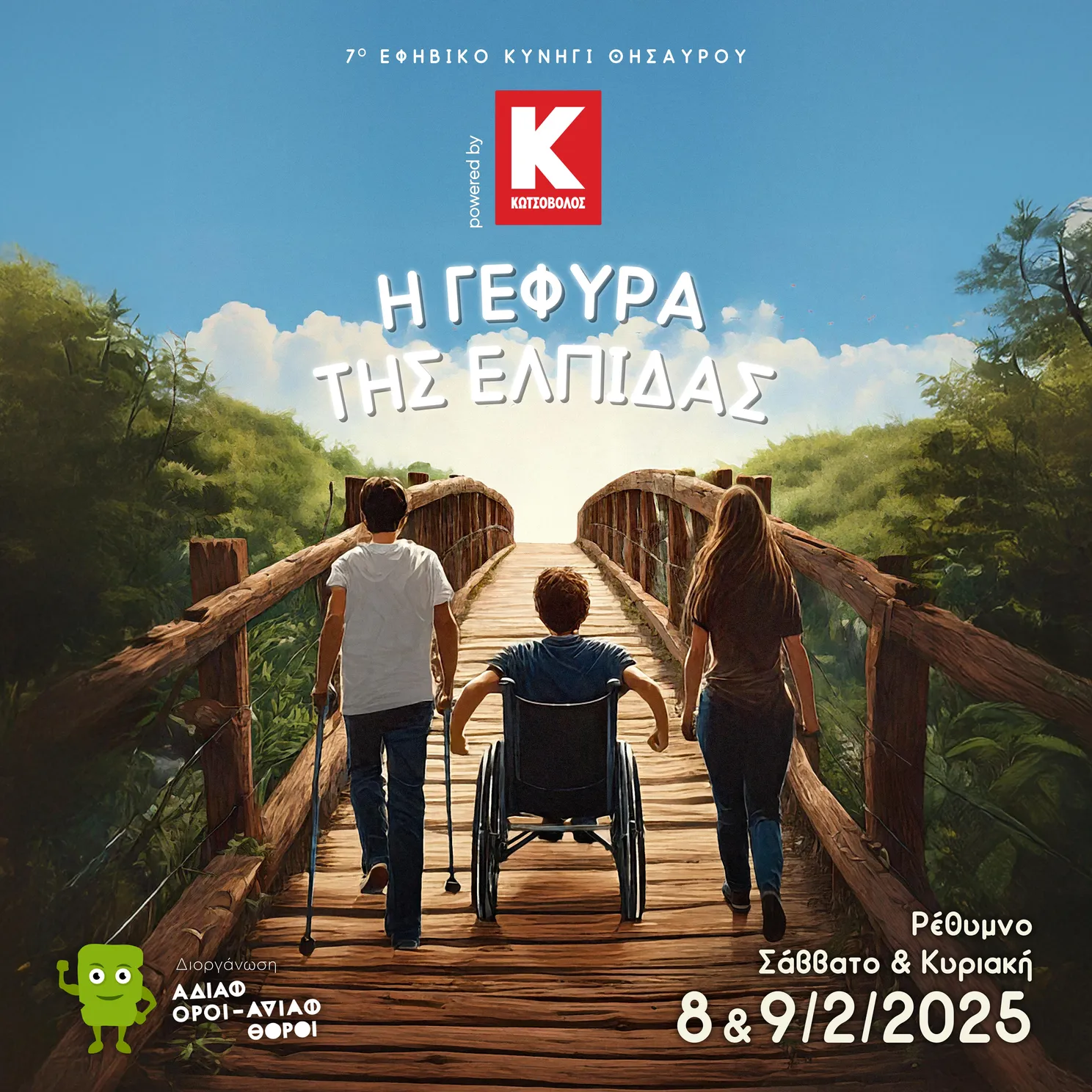 Η ιστορία του 7 ου εφηβικού κυνηγιού θησαυρού του Ρεθύμνου μιλάει για εφτά έφηβους με αναπηρία που μεγαλώνουν τώρα στο Ρέθυμνο. Είναι μαθητές/τριες σε σχολεία του Ρεθύμνου. Τυχαία γνωρίζονται μεταξύ τους σε διάφορα σημεία της πόλης μας. Μοιράζονται τους προβληματισμούς, τις δυσκολίες, τα βιώματά στους στον αγώνα που δίνουν καθημερινά για τη ζωή που ονειρεύονται. Με οδηγό την ελπίδα προχωράνε…